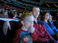 When we were trying to take a picture of Talan with the cake Jeremy came over and stuck a fork in the cake and took some icing. Talan didn't quite understand what was going on so he went ahead and started to lick the cake so this is the best picture we have of him with the cake.